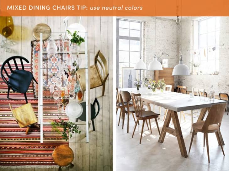 Mixing dining chairs and pairing by era adds a sense of consistency to the look.